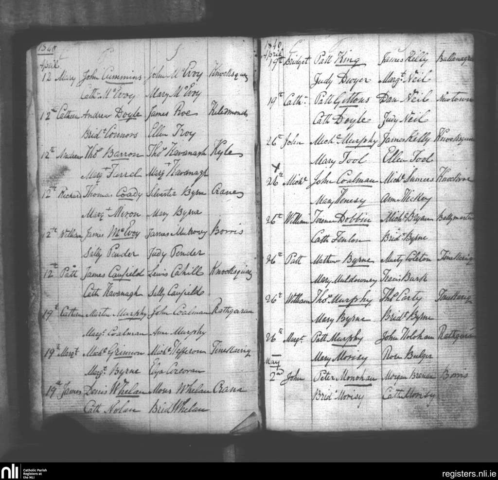 Borris; County of Wexford, Carlow; Diocese of Kildare and Leighlin. Baptisms, Apr. 1840 to May 1840
