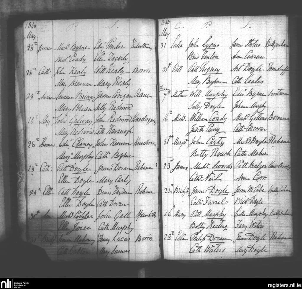 Borris; County of Wexford, Carlow; Diocese of Kildare and Leighlin. Baptisms, May 1840 to June 1840
