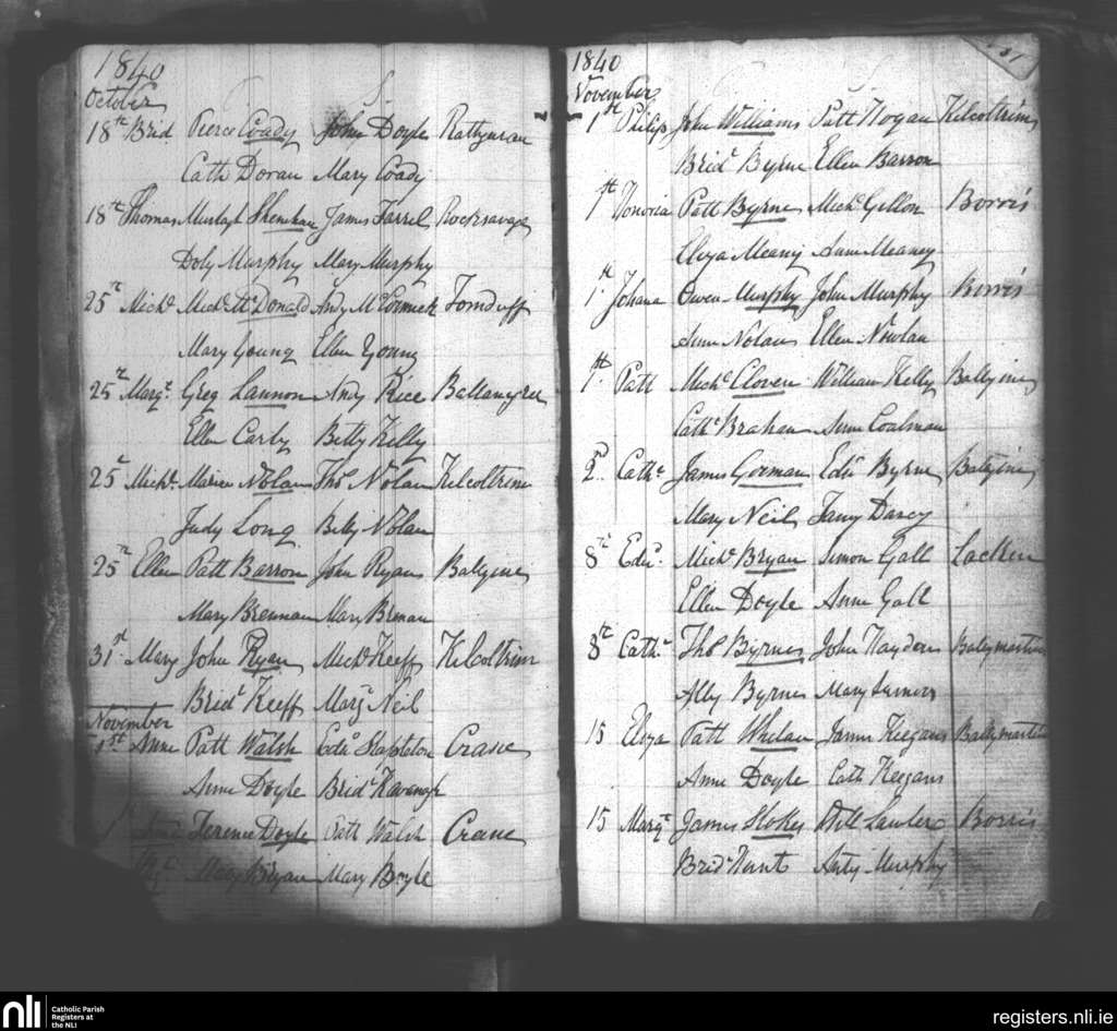 Borris; County of Wexford, Carlow; Diocese of Kildare and Leighlin. Baptisms, Oct. 1840 to Nov. 1840
