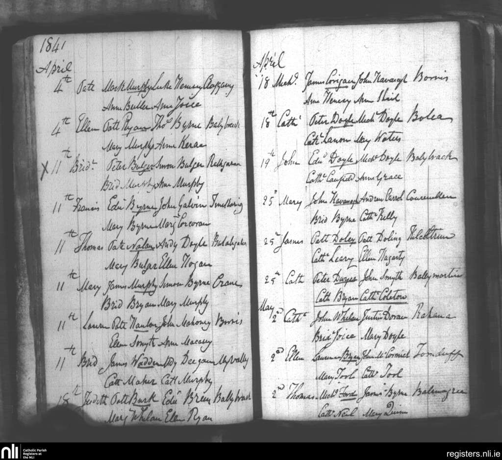 Borris; County of Wexford, Carlow; Diocese of Kildare and Leighlin. Baptisms, Apr. 1841 to May 1841