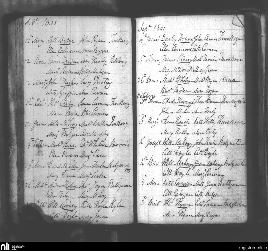 Borris; County of Wexford, Carlow; Diocese of Kildare and Leighlin. Baptisms, Sep. 1841 to Oct. 1841