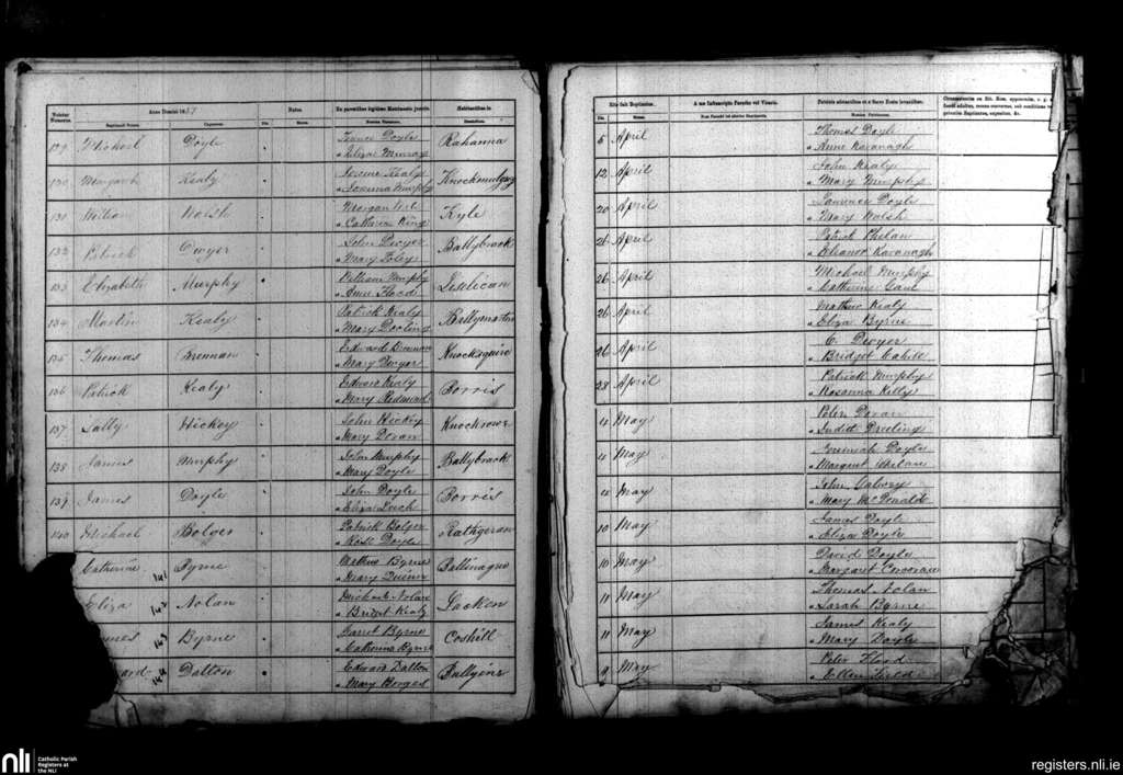 Borris; County of Carlow, Wexford; Diocese of Kildare and Leighlin. Baptisms, Apr. 1857 to May 1857