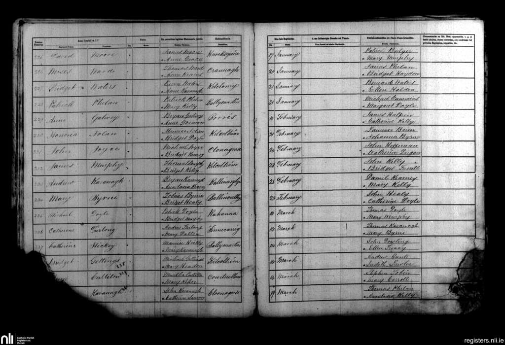 Borris; County of Carlow, Wexford; Diocese of Kildare and Leighlin. Baptisms, Jan. 1858 to Mar. 1858
