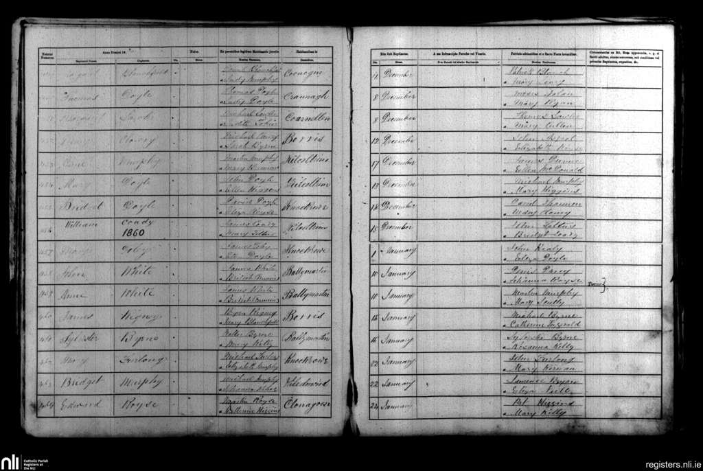 Borris; County of Carlow, Wexford; Diocese of Kildare and Leighlin. Baptisms, Dec. 1859 to Jan. 1860