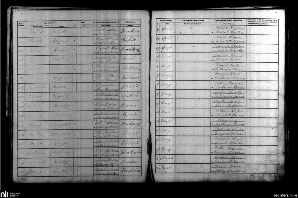 Borris; County of Carlow, Wexford; Diocese of Kildare and Leighlin. Baptisms, Apr. 1860 to June 1860