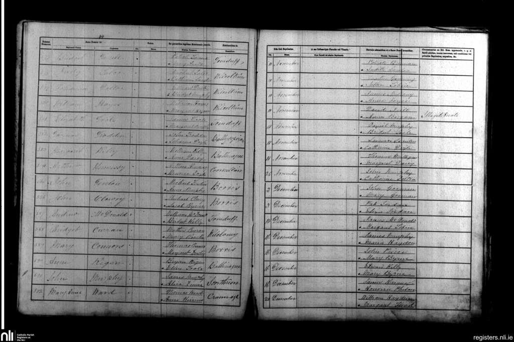 Borris; County of Carlow, Wexford; Diocese of Kildare and Leighlin. Baptisms, Nov. 1860 to Dec. 1860