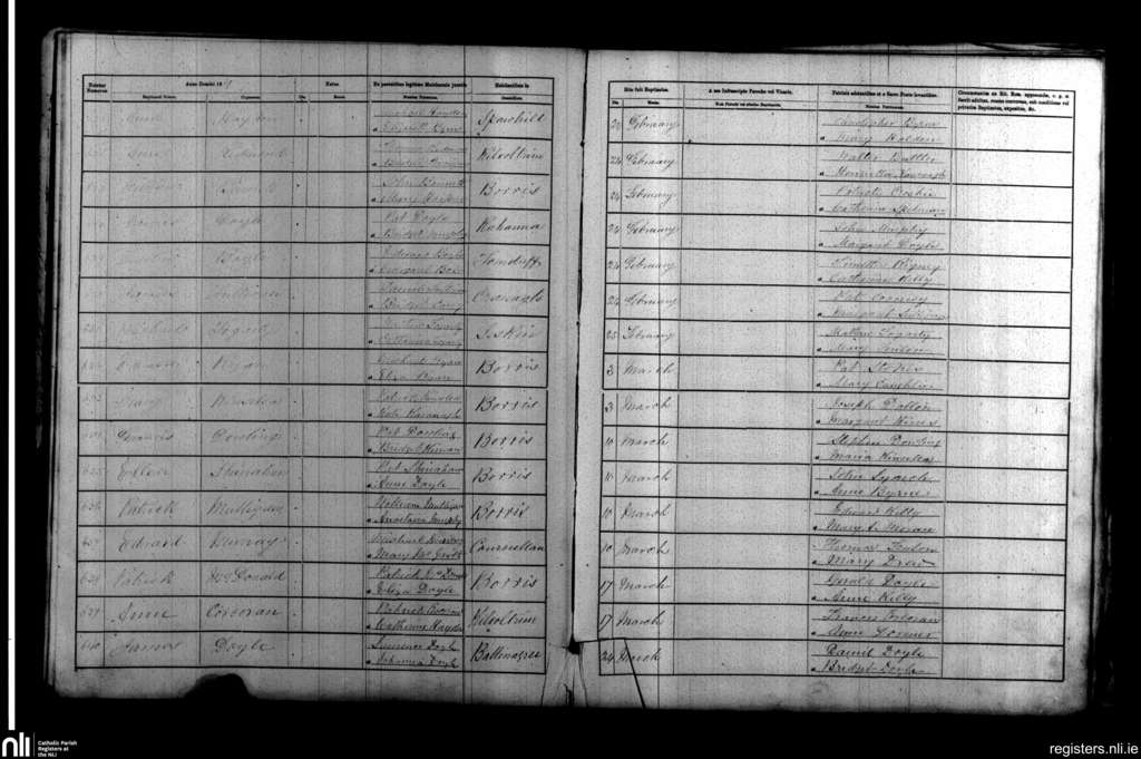 Borris; County of Carlow, Wexford; Diocese of Kildare and Leighlin. Baptisms, Feb. 1861 to Mar. 1861