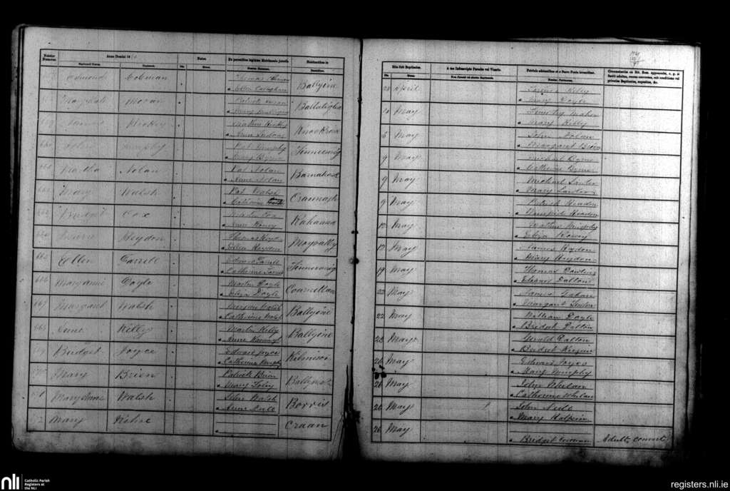 Borris; County of Carlow, Wexford; Diocese of Kildare and Leighlin. Baptisms, Apr. 1861 to May 1861