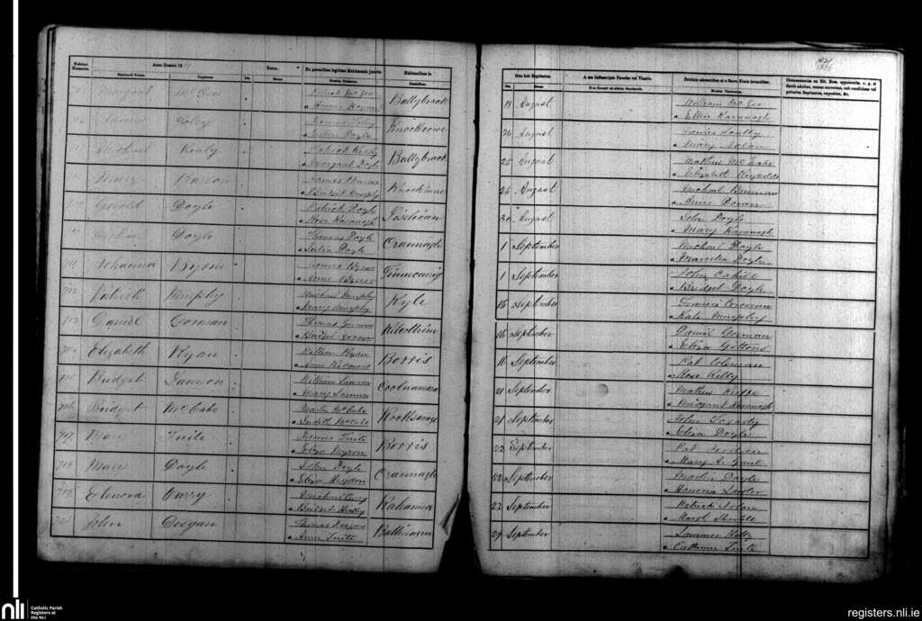 Borris; County of Carlow, Wexford; Diocese of Kildare and Leighlin. Baptisms, Aug. 1861 to Sep. 1861