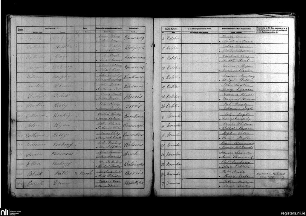 Borris; County of Carlow, Wexford; Diocese of Kildare and Leighlin. Baptisms, Oct. 1862 to Dec. 1862