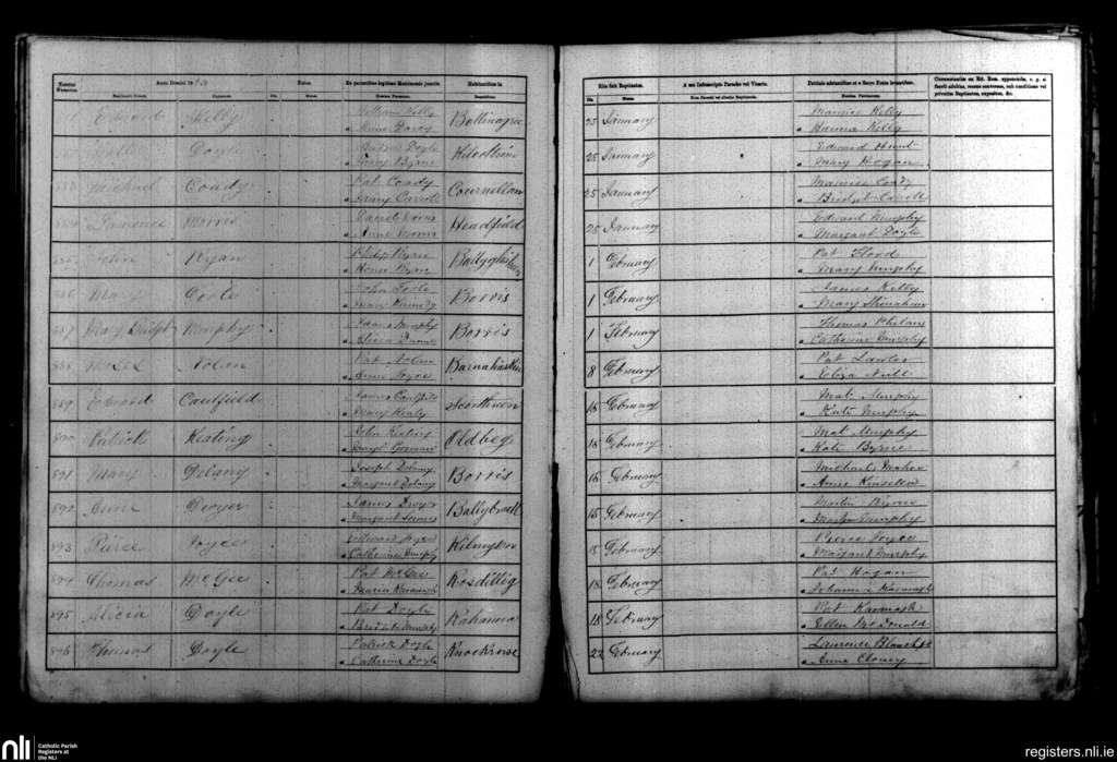 Borris; County of Carlow, Wexford; Diocese of Kildare and Leighlin. Baptisms, Jan. 1863 to Feb. 1863