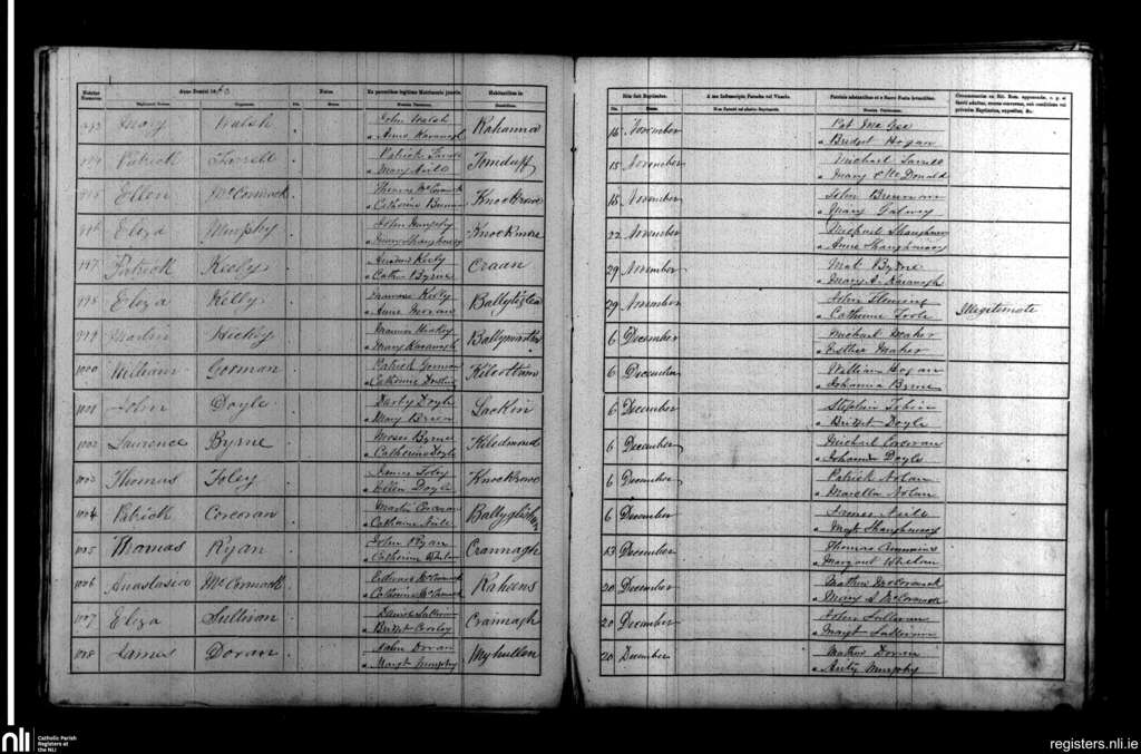 Borris; County of Carlow, Wexford; Diocese of Kildare and Leighlin. Baptisms, Nov. 1863 to Dec. 1863