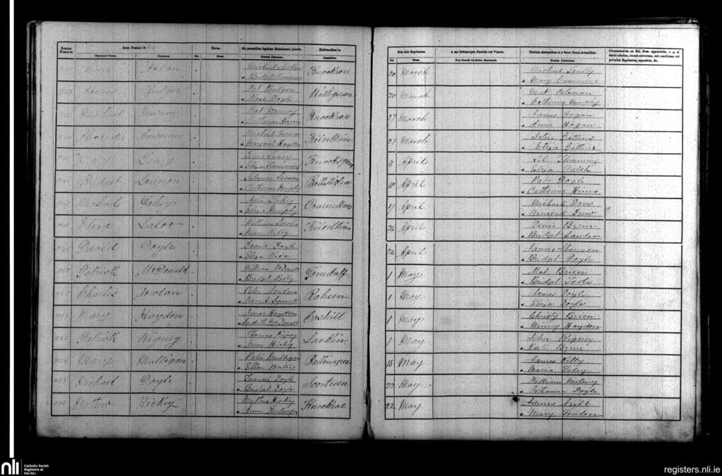 Borris; County of Carlow, Wexford; Diocese of Kildare and Leighlin. Baptisms, Mar. 1864 to May 1864