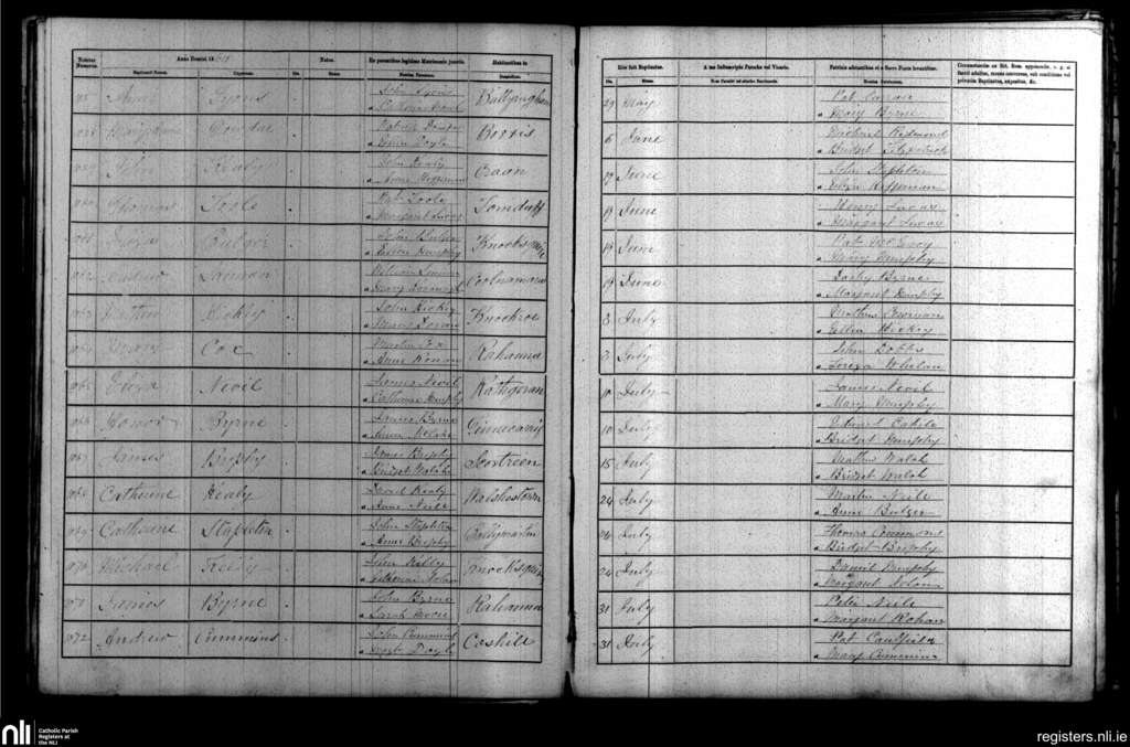 Borris; County of Carlow, Wexford; Diocese of Kildare and Leighlin. Baptisms, May 1864 to July 1864