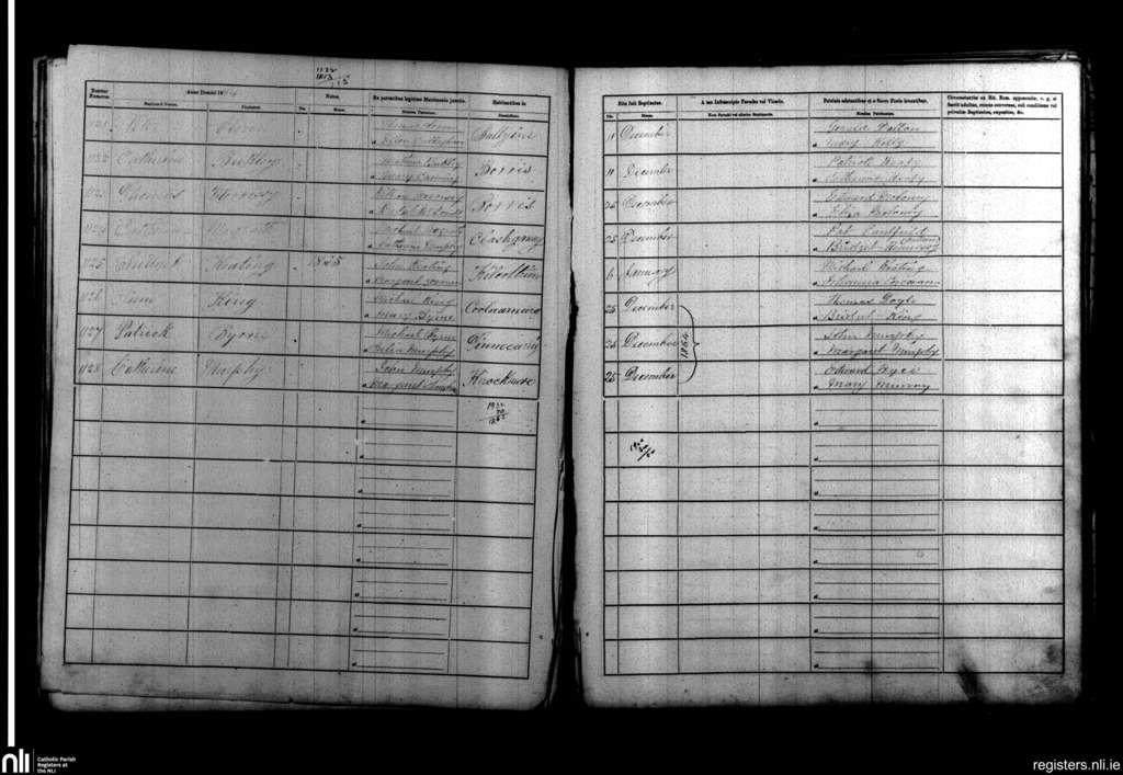 Borris; County of Carlow, Wexford; Diocese of Kildare and Leighlin. Baptisms, Dec. 1864