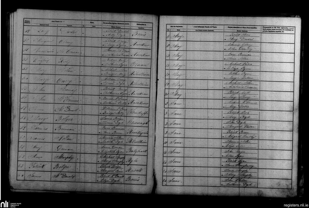 Borris; County of Carlow, Wexford; Diocese of Kildare and Leighlin. Baptisms, May 1866 to June 1866