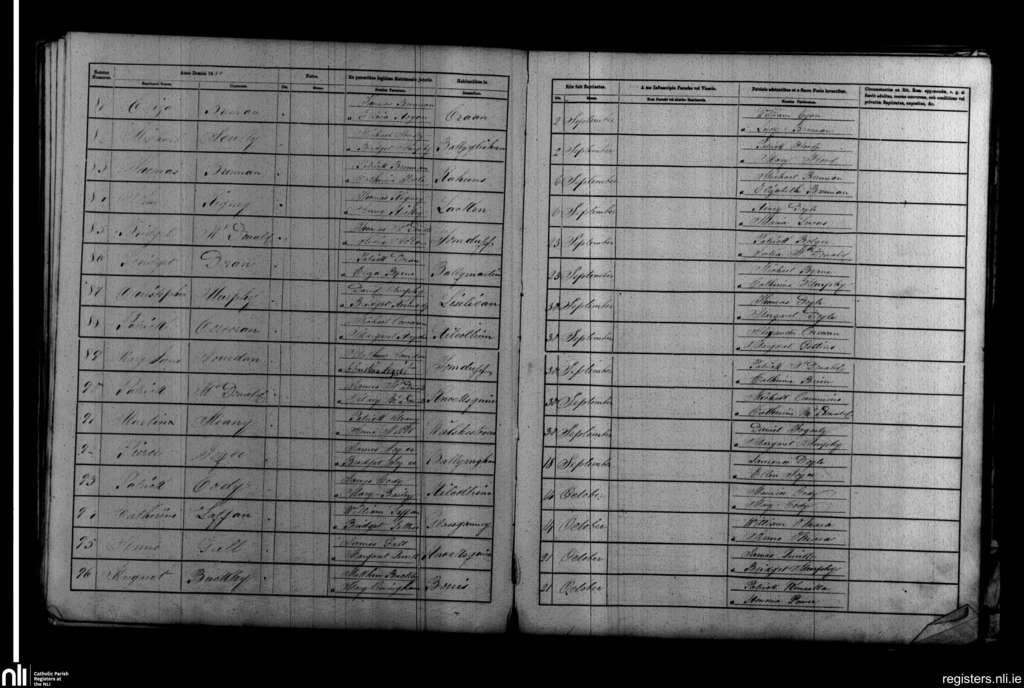 Borris; County of Carlow, Wexford; Diocese of Kildare and Leighlin. Baptisms, Sep. 1866 to Oct. 1866