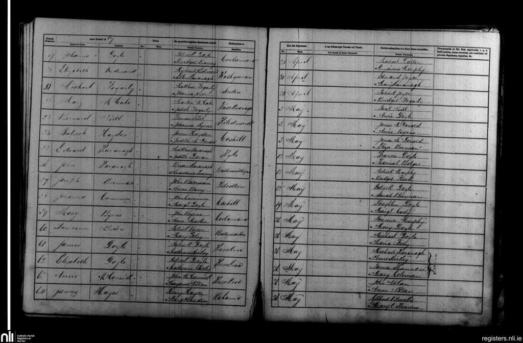 Borris; County of Carlow, Wexford; Diocese of Kildare and Leighlin. Baptisms, Apr. 1867 to May 1867