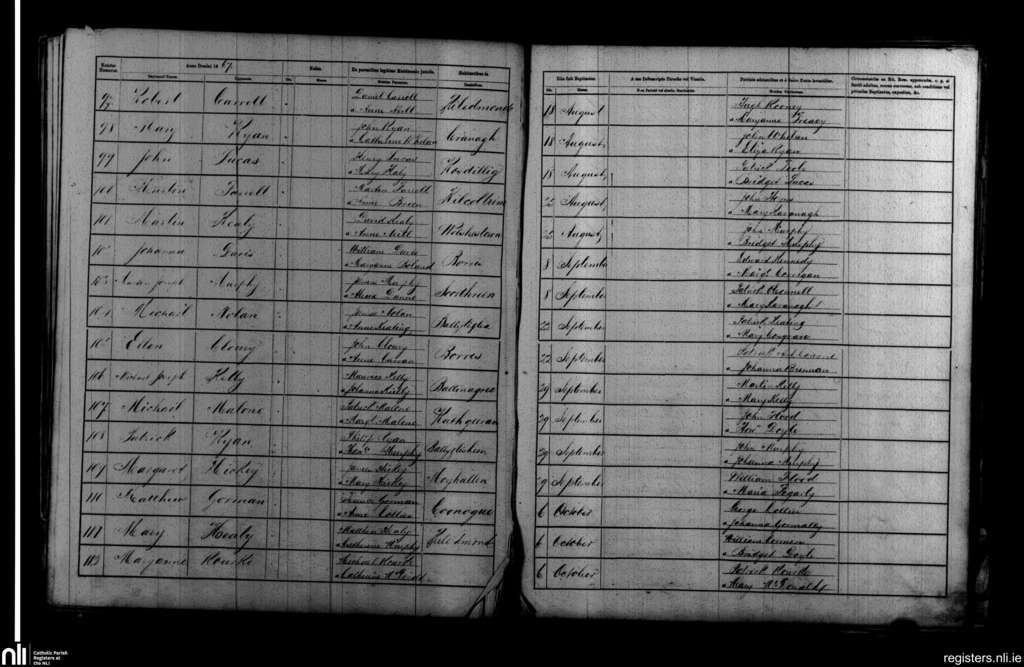 Borris; County of Carlow, Wexford; Diocese of Kildare and Leighlin. Baptisms, Aug. 1867 to Oct. 1867