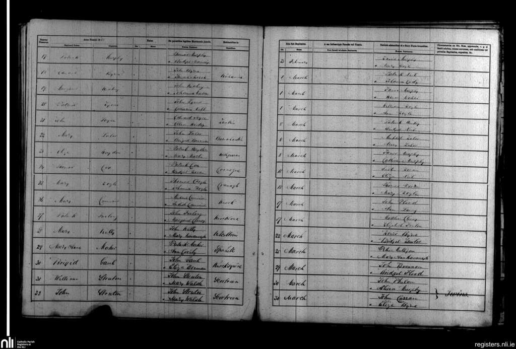 Borris; County of Carlow, Wexford; Diocese of Kildare and Leighlin. Baptisms, Feb. 1868 to Mar. 1868