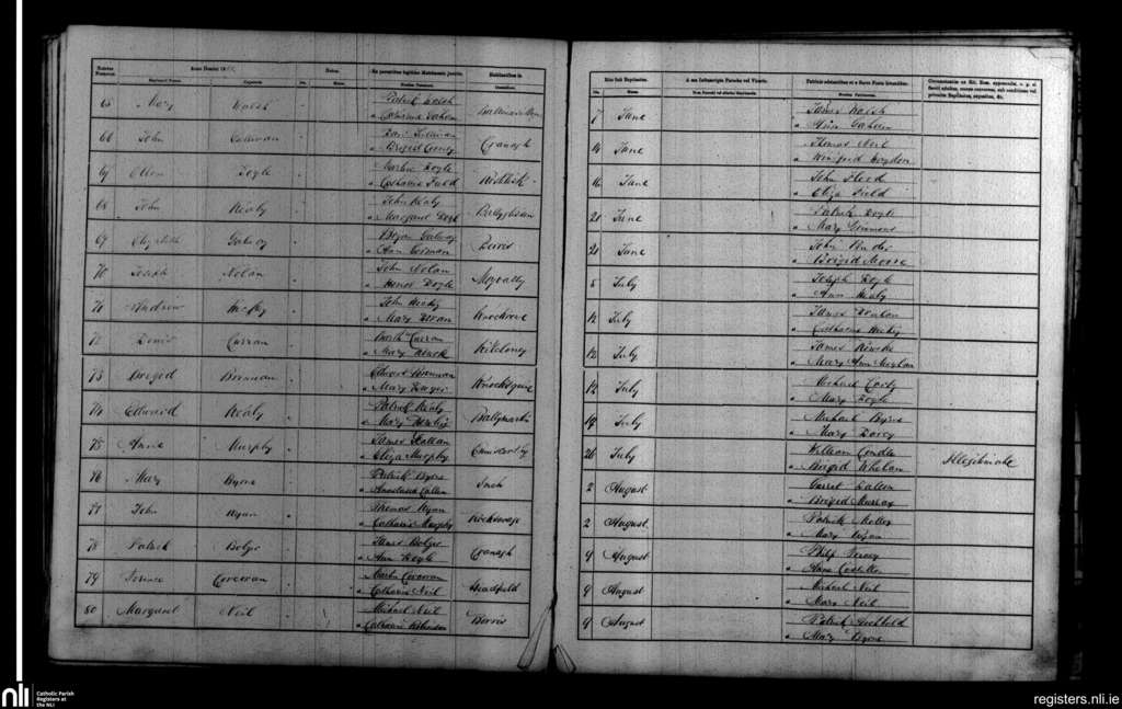 Borris; County of Carlow, Wexford; Diocese of Kildare and Leighlin. Baptisms, June 1868 to Aug. 1868
