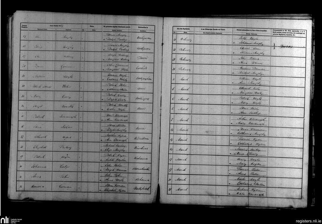 Borris; County of Carlow, Wexford; Diocese of Kildare and Leighlin. Baptisms, Feb. 1869 to Mar. 1869