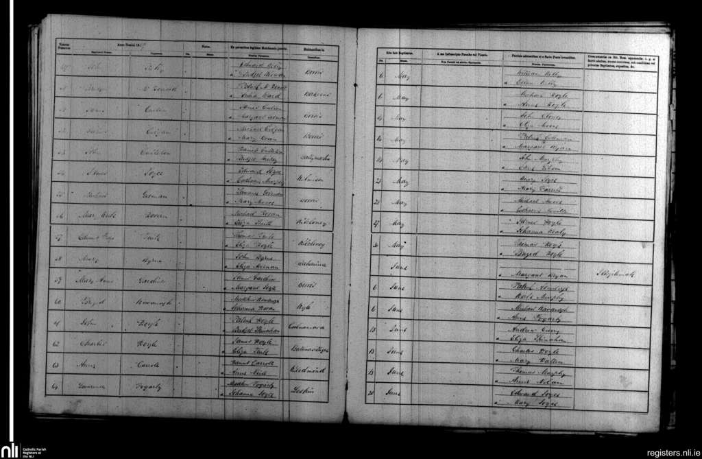 Borris; County of Carlow, Wexford; Diocese of Kildare and Leighlin. Baptisms, May 1869 to June 1869