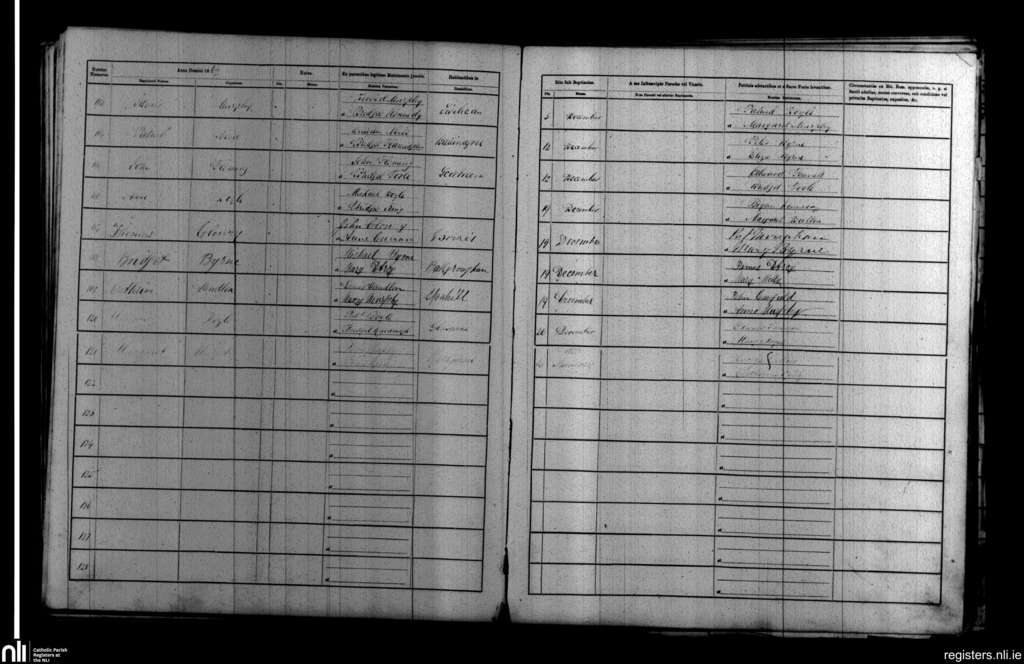 Borris; County of Carlow, Wexford; Diocese of Kildare and Leighlin. Baptisms, Dec. 1869