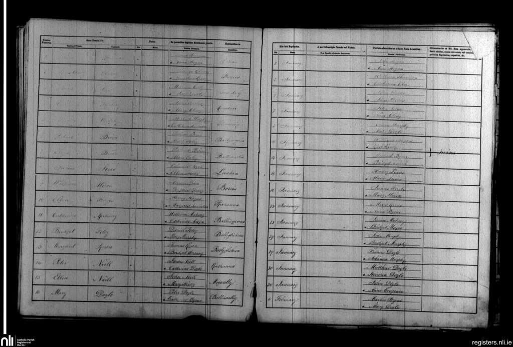 Borris; County of Carlow, Wexford; Diocese of Kildare and Leighlin. Baptisms, Jan. 1870 to Feb. 1870
