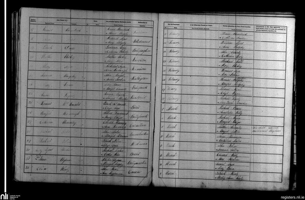 Borris; County of Carlow, Wexford; Diocese of Kildare and Leighlin. Baptisms, Feb. 1872 to Mar. 1872