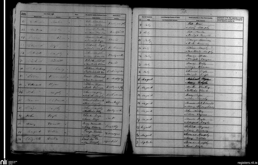 Borris; County of Carlow, Wexford; Diocese of Kildare and Leighlin. Baptisms, July 1876 to Sep. 1876