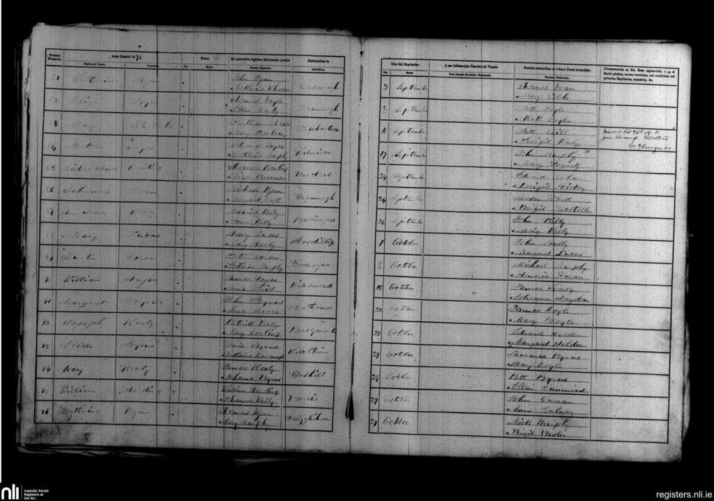 Borris; County of Carlow, Wexford; Diocese of Kildare and Leighlin. Baptisms, Sep. 1876 to Oct. 1876