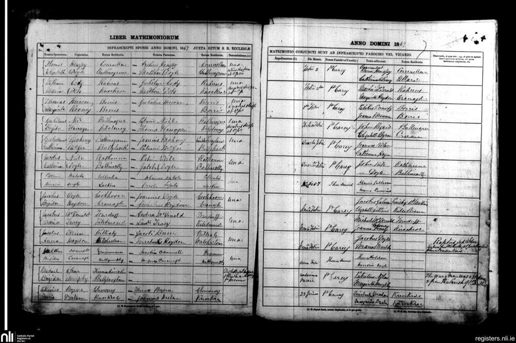 Borris; County of Carlow, Wexford; Diocese of Kildare and Leighlin. Marriages, Feb. 1869 to June 1869