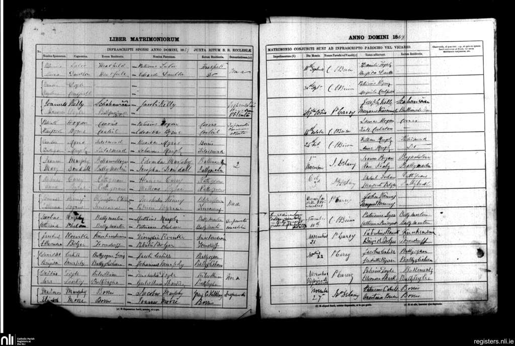 Borris; County of Carlow, Wexford; Diocese of Kildare and Leighlin. Marriages, Sep. 1869 to Nov. 1869
