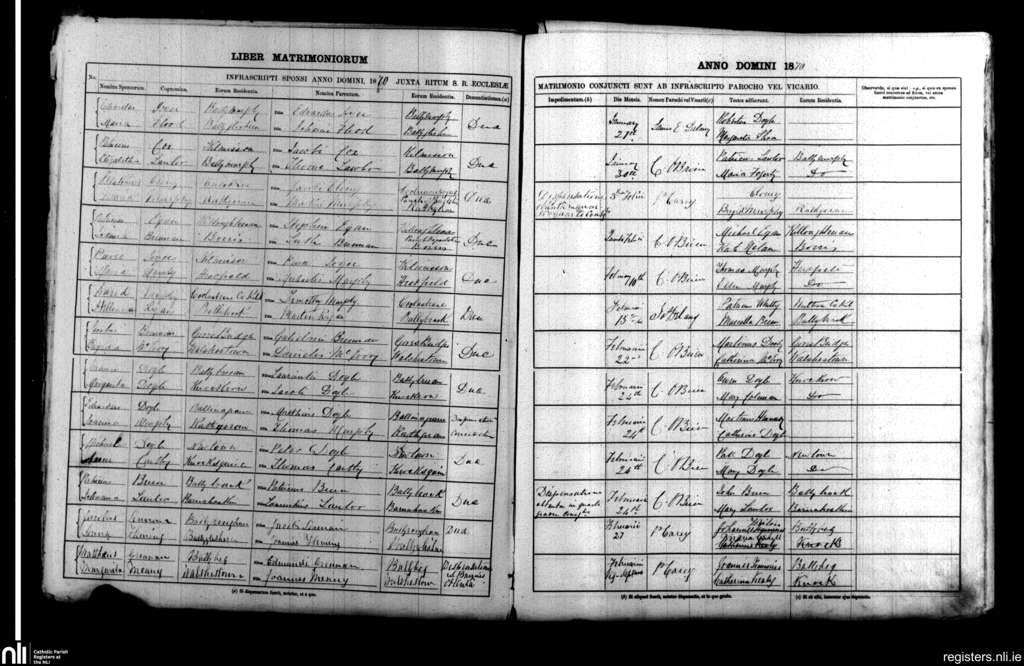 Borris; County of Carlow, Wexford; Diocese of Kildare and Leighlin. Marriages, Jan. 1870 to Feb. 1870