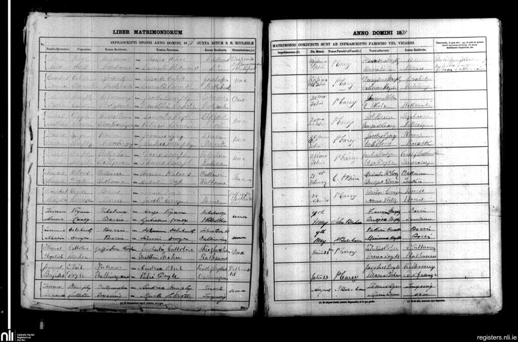 Borris; County of Carlow, Wexford; Diocese of Kildare and Leighlin. Marriages, Feb. 1871 to Aug. 1871