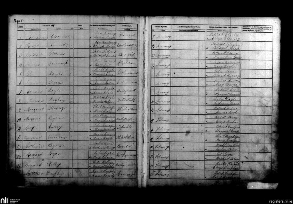 Borris; County of Carlow, Wexford; Diocese of Kildare and Leighlin. Baptisms
