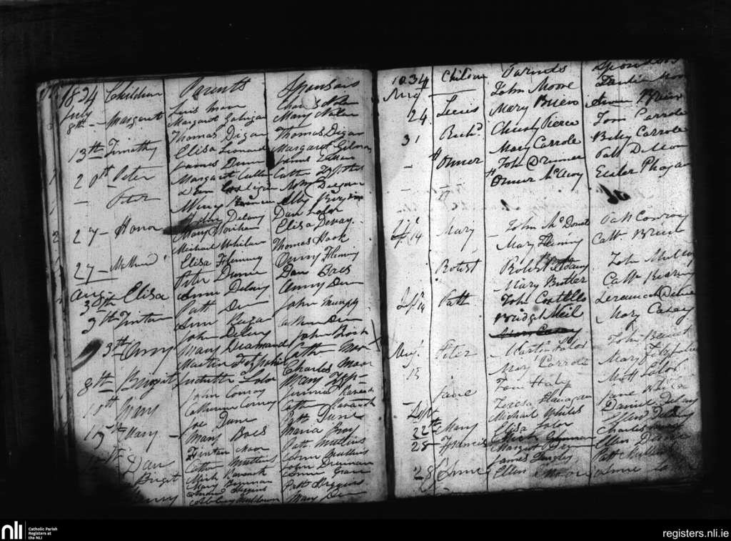 Cappinrush; County of Laois; Diocese of Kildare and Leighlin. Baptisms, July 1834 to Sep. 1834