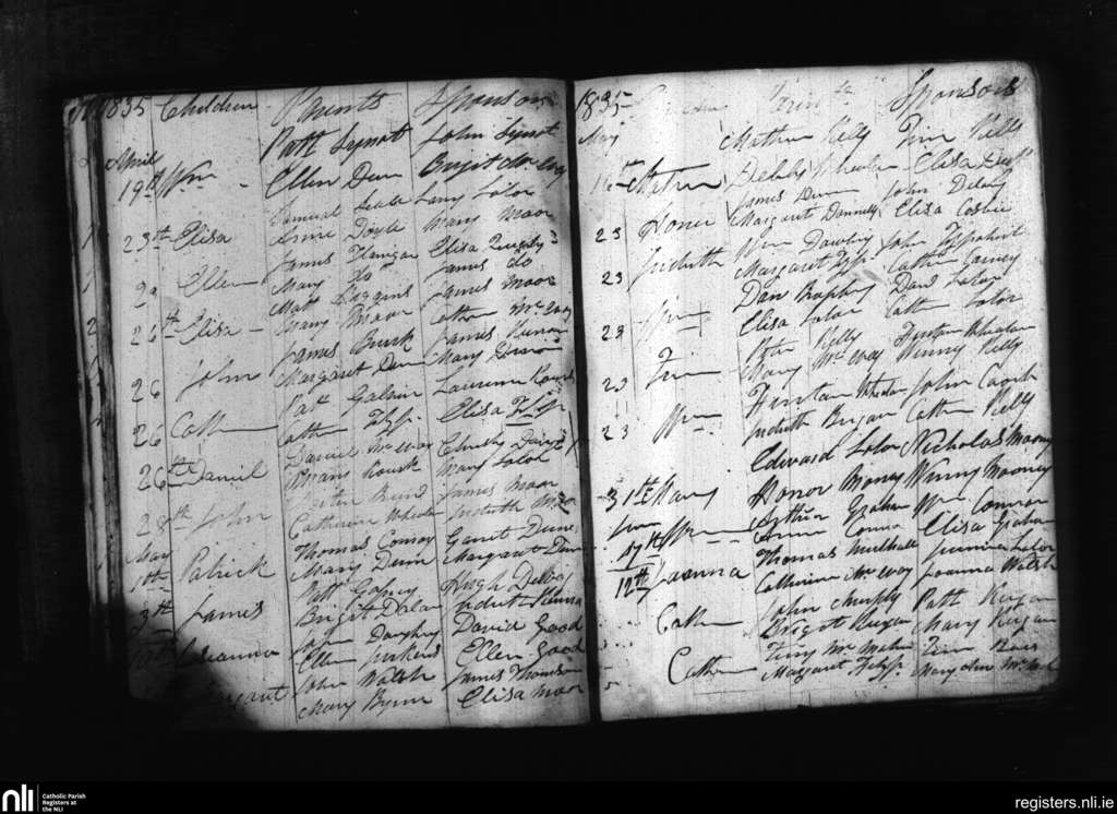 Cappinrush; County of Laois; Diocese of Kildare and Leighlin. Baptisms, Apr. 1835 to June 1835
