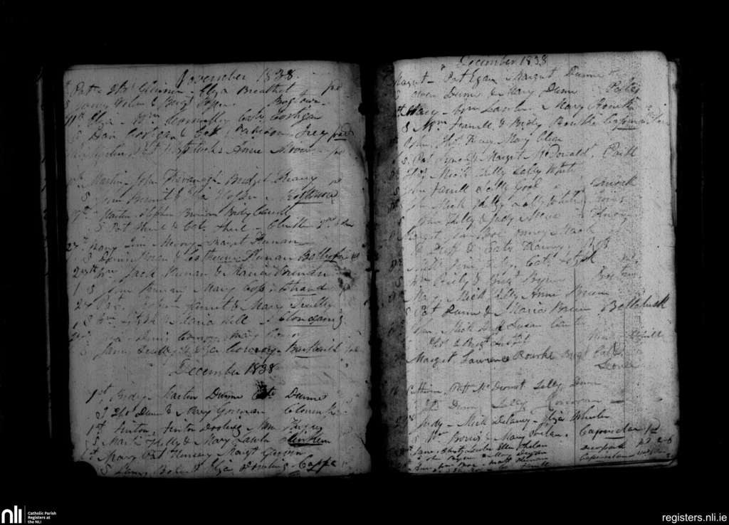 Cappinrush; County of Laois; Diocese of Kildare and Leighlin. Baptisms, Nov. 1838 to Dec. 1838