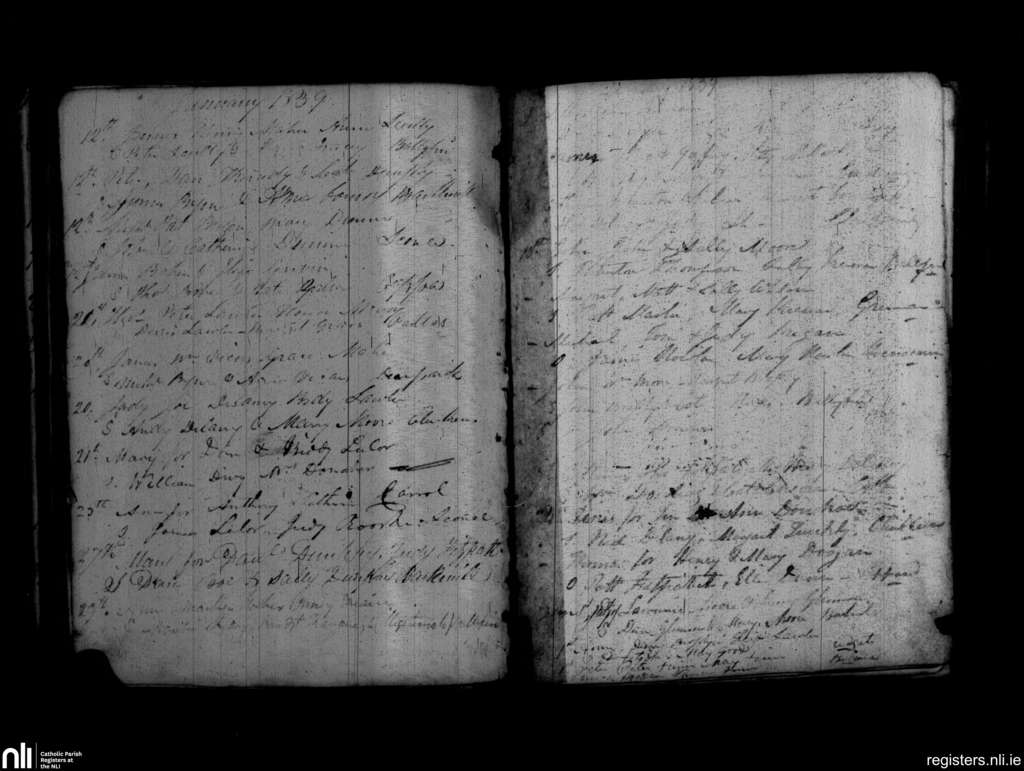 Cappinrush; County of Laois; Diocese of Kildare and Leighlin. Baptisms, Jan. 1839 to Feb. 1839