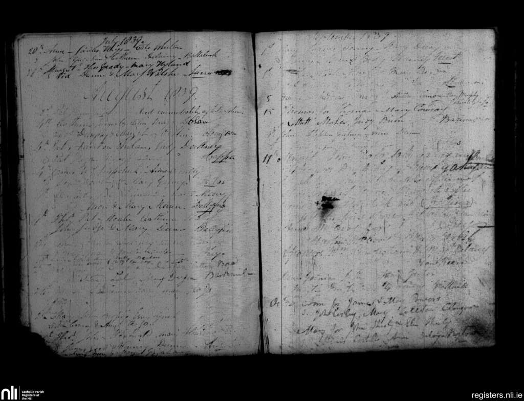 Cappinrush; County of Laois; Diocese of Kildare and Leighlin. Baptisms, July 1839 to Oct. 1839