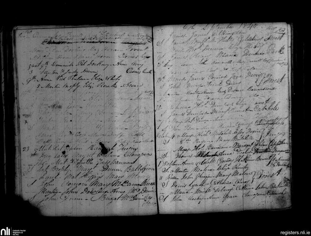 Cappinrush; County of Laois; Diocese of Kildare and Leighlin. Baptisms, July 1840 to Oct. 1840