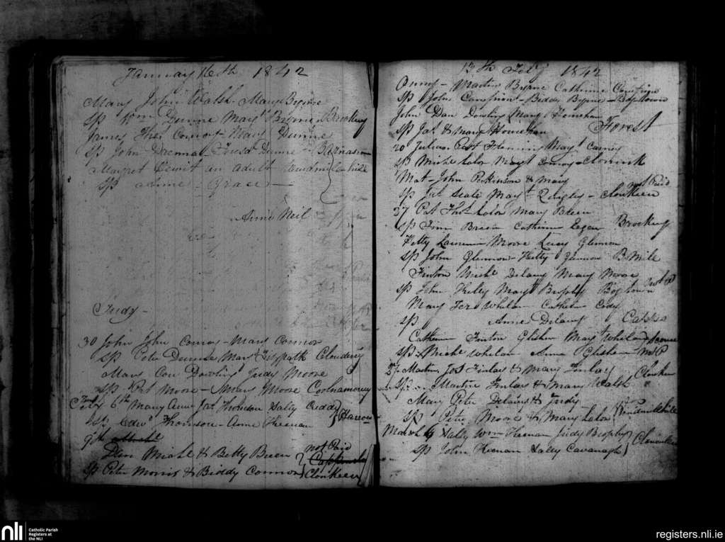Cappinrush; County of Laois; Diocese of Kildare and Leighlin. Baptisms, Jan. 1842 to Mar. 1842