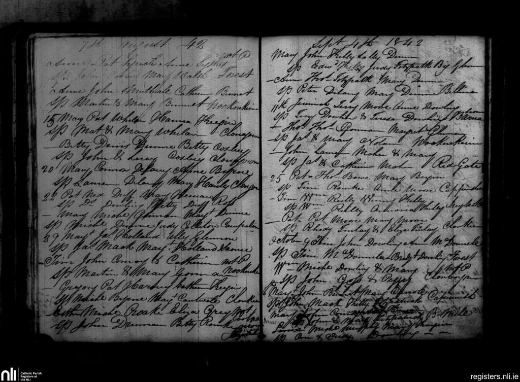 Cappinrush; County of Laois; Diocese of Kildare and Leighlin. Baptisms, Aug. 1842 to Oct. 1842