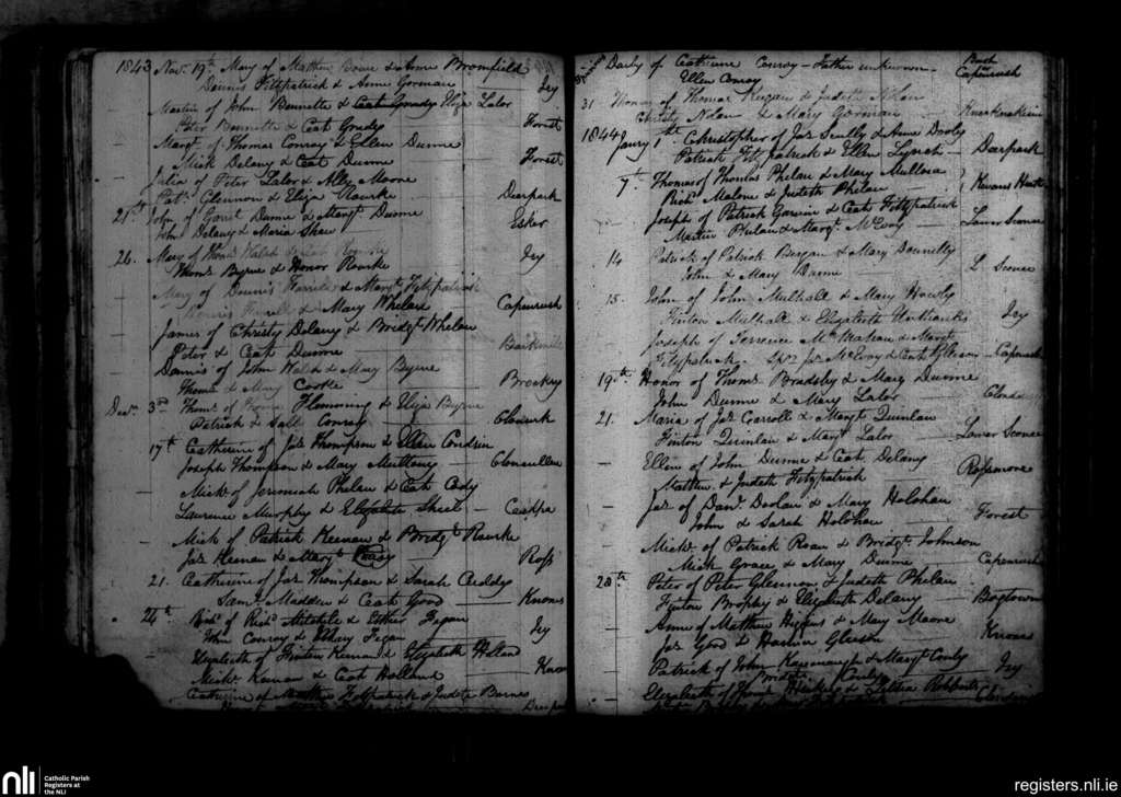 Cappinrush; County of Laois; Diocese of Kildare and Leighlin. Baptisms, Nov. 1843 to Jan. 1844