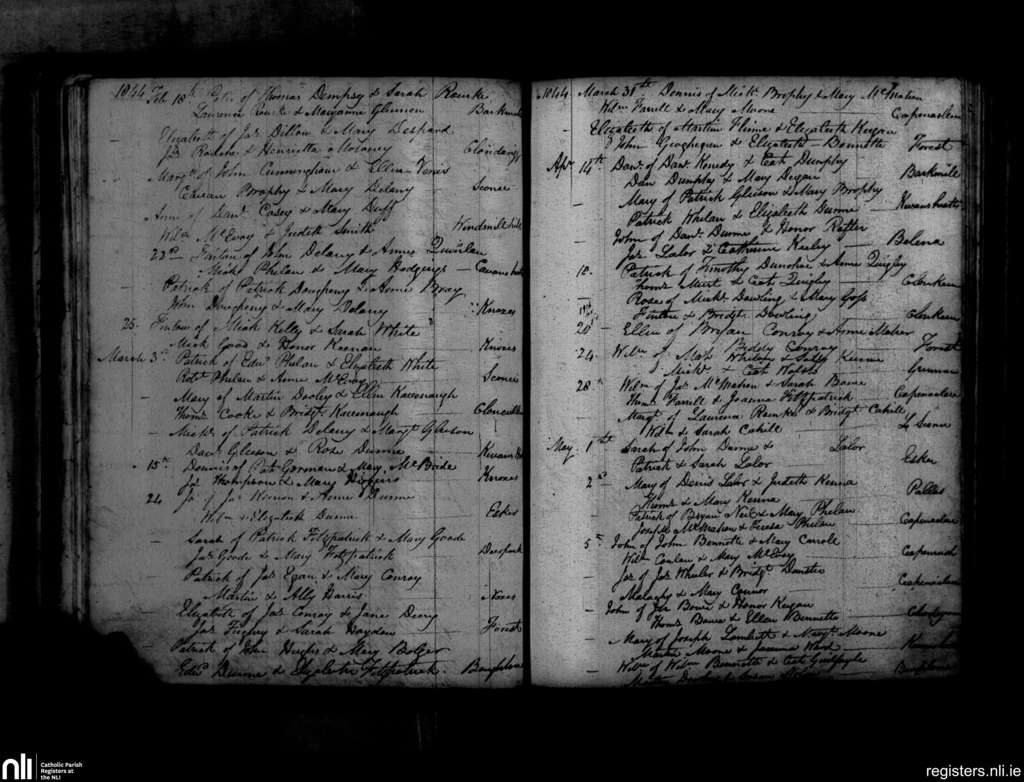 Cappinrush; County of Laois; Diocese of Kildare and Leighlin. Baptisms, Feb. 1844 to May 1844