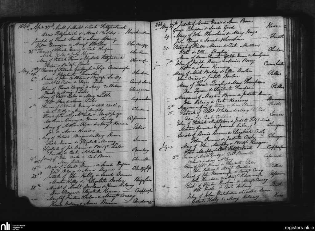 Cappinrush; County of Laois; Diocese of Kildare and Leighlin. Baptisms, Apr. 1845 to July 1845