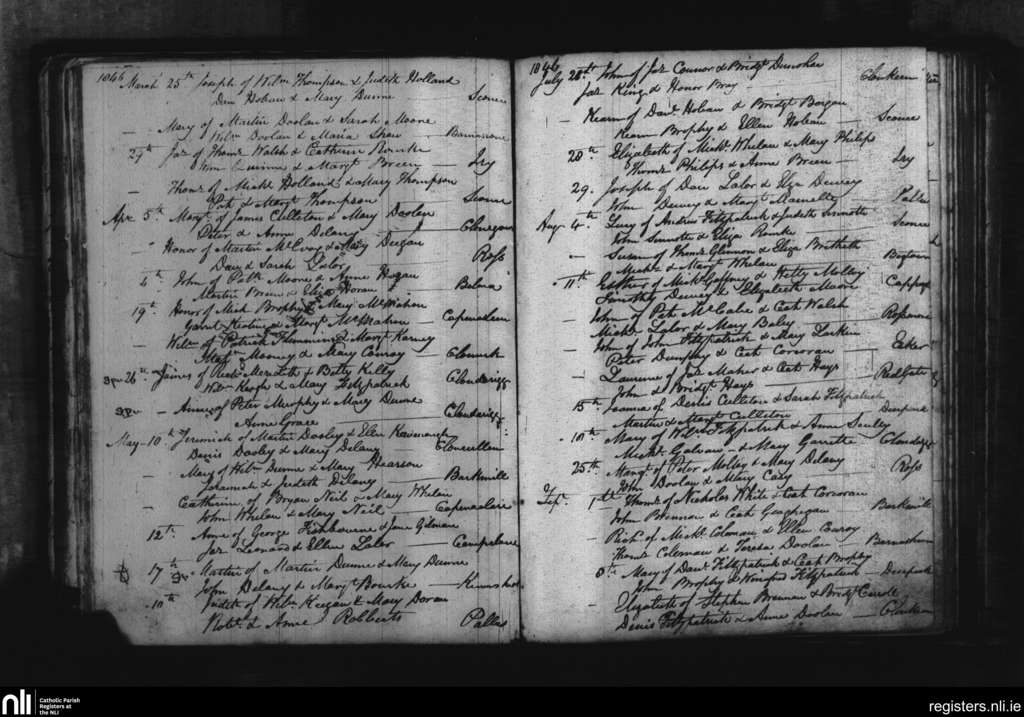 Cappinrush; County of Laois; Diocese of Kildare and Leighlin. Baptisms, Mar. 1846 to Sep. 1846