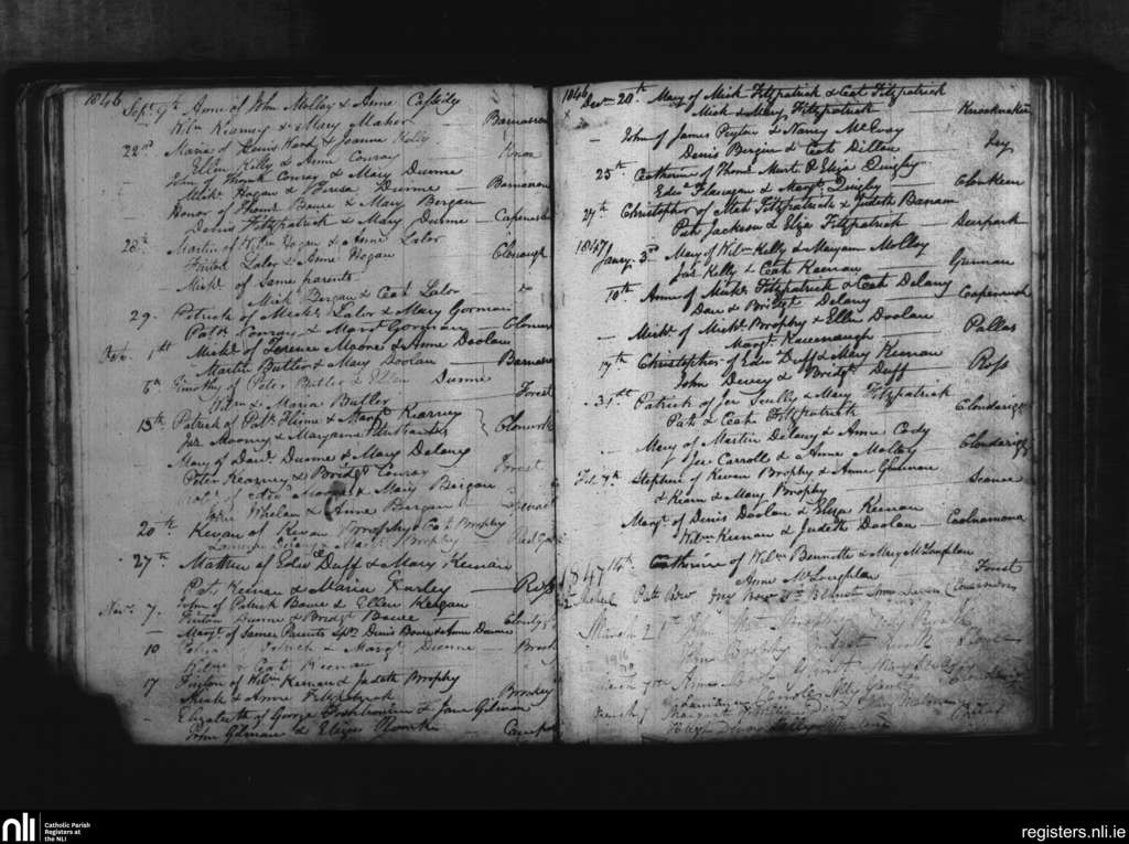 Cappinrush; County of Laois; Diocese of Kildare and Leighlin. Baptisms, Sep. 1846 to Mar. 1847